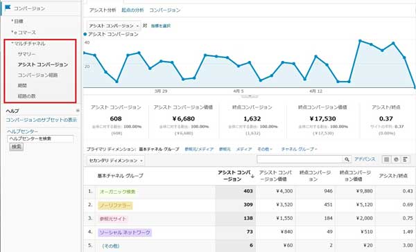 マルチチャネルの機能や活用方法に関しては、Google アナリティクスの新機能「マルチチャネル」 5つのレポートとその活用方法を紹介!(前編)の記事をご覧ください。