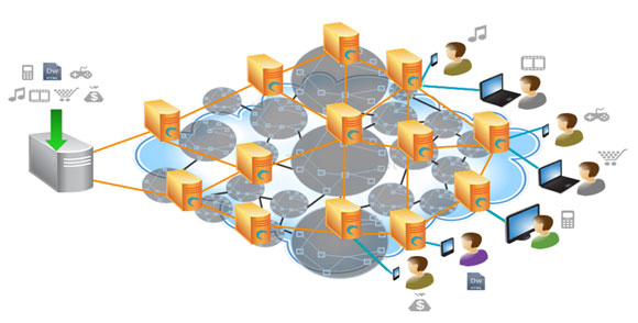 エンドユーザーとオリジンサイトの最適の経路を設定する。通常アクセスする経路だけでなく、コンテンツを早く流す最適な経路を設定可能