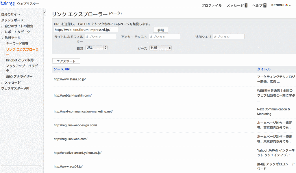 Bingウェブマスターツールでバックリンク取得が可能に