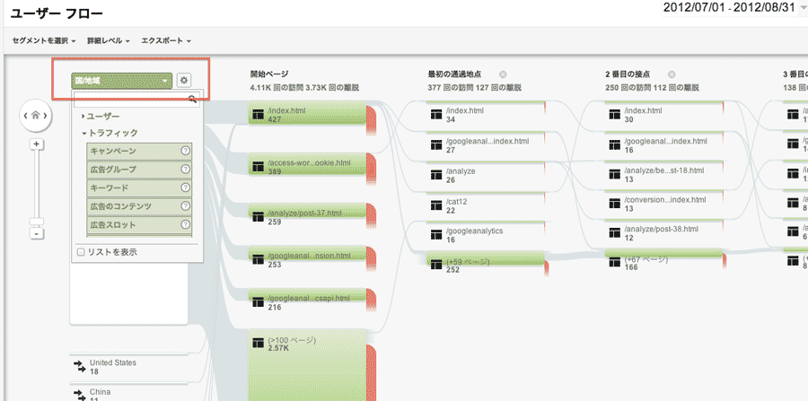 ![[ユーザー]のなかの[ユーザーフロー]を選ぶと、ページ移動が確認できる](/files/images/article2011/clinic/2012/clinic22-03m.png)