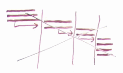 第2に、僕らはこのようなウォーターフォール型開発モデルで仕事を進める傾向がある。最初に要件を設定し、それから仕事の塊を1つ、また1つ、また1つと処理していく。モデルだ。