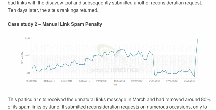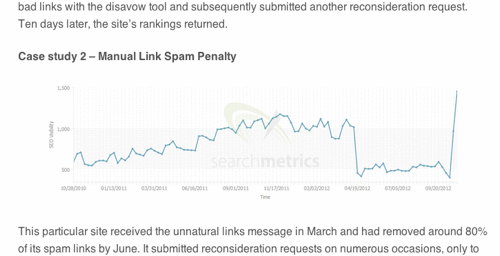 3つのサイトがツールを使って被リンクペナルティのリカバリに成功したとのことである。