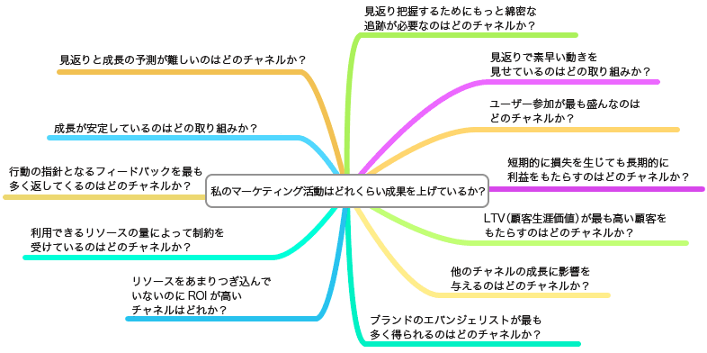 自分のマーケティング活動にどれくらいの見返りがあるかを把握する場合、以下のような質問も役に立つ。