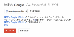 グーグルは特定のグーグルプロパティからオプトアウトする(特定のグーグルのサービスには情報を掲載しない)機能をウェブマスターツールに追加した。FTC(米連邦取引委員会)による調査への対応のようだ。