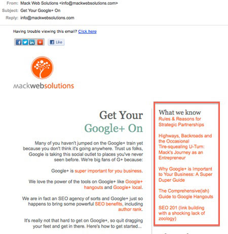 こうすることで、彼らがリンクしてくれる可能性が出てくるし、そのコンテンツを有益だと思ってくれそうな知り合いに転送してくれるかもしれない。この方法を使って注目を集め、うまく好印象を与えることに成功すれば、持続的で実りのあるパートナー関係に進む可能性も高くなる。