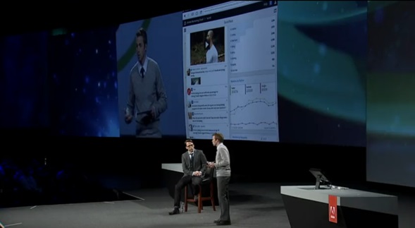 デジタルマーケティング関連の大規模イベント「Adobe Summit 2013」初日基調講演の後半では、「Adobe Marketing Cloud」を用いた大掛かりなデモンストレーションが行われた。その名も「MEGA DEMO(メガデモ)」。基調講演の前半で話された「統合」というコンセプトに即して、複数の異なる役割を持った担当者が次々と舞台に登場し、一連のキャンペーン活動を連携して行って見せた。