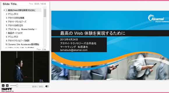 「ページの表示速度が35%速くなると、売上が5%増加する」。アカマイ・テクノロジーズの松原達也氏はこのように話し、さまざまなデータを交えながら、Webサイトの高速表示の重要性を説いた。