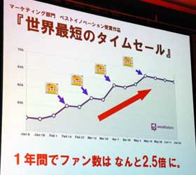 Facebookで実施した世界最速のタイムセールもニュース作りを意識した企画の1つ。応募チャンスを0.1秒とあえて難しくすることで、獲得するまでの過程をおもしろくし、Facebook上で話題を生むのが狙いだ。「Facebookでは簡単に取れてしまうとつまらない。0.1秒まで入れたのがみそ、難しくしたのが一番の重要だったのではないかと思っている」と池田氏は話す。