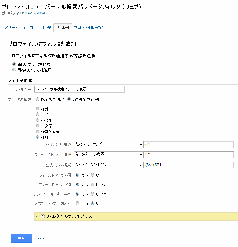 僕はキャンペーンの参照元を上書きする方法に決めたので、その設定例を以下に示す。この方法にしたのは、オーガニック検索リファラをここでチェックしているからだ。