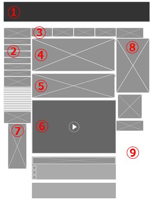 色がとっちらかり気味なのが気になる。実際に色分析ツールにかけると、かなり多様な色が使われている。基本色とアクセント色などを決め、色を整理するといいだろう。④のエリアは、写真をアイコン的に付ければ色分けする必要がなくなるはずだ。