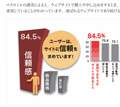 というのも、マクロミルが日本で行った調査では、「商品購入サイトの選択基準」として「信用できそうなサイトであること」が85%と最も多かったのです。
