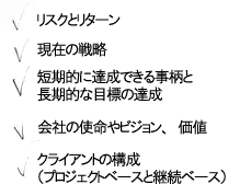 専門分野に特化した企業にしたいのか、それとも包括的なビジネスを目指すのかだ。