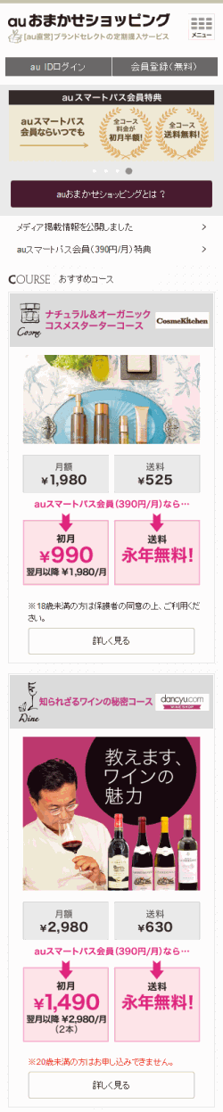 KDDIがグルメ・ワイン・コスメなど定期販売「auおまかせショッピング」 年度内に会員10万人へ