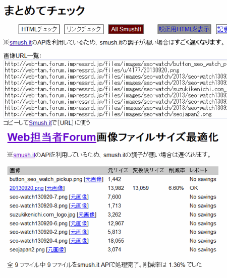 これは、HTMLページで表示する画像が、できるだけ軽いファイルサイズになっているかの最終チェックです。