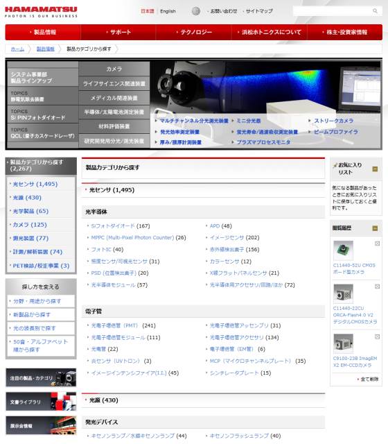 - 対象サイト: 浜松ホトニクス株式会社 企業/製品情報サイト