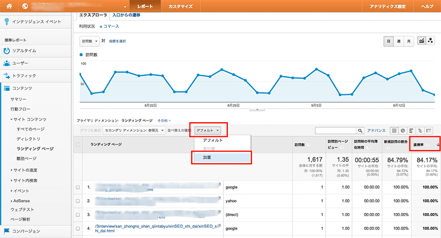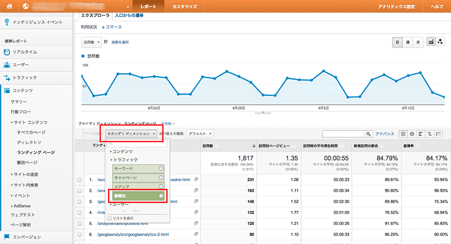 うん。具体的には、参照元ごとにランディングページの直帰率を確認する。