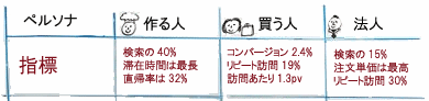 主要なペルソナとしてはこれら3つがあるのだから、見出しには「クッキーのレシピ」「クッキーを買う」「法人向け割引」と書いておくべきだ。