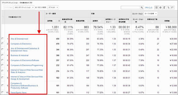 最後に[ユーザー]>[インタレスト カテゴリ]>[他のカテゴリ]レポート(図9)を見ていこう。こちらも基本構造は同じだ。