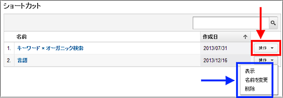 この「ショートカット」機能は、各種グラフ表示やデータ表示の設定に手を加えた条件まで記憶しておいてくれるのがポイントだ。なので単によく見るレポートだからとそのまま「ショートカット」に登録するのではもったいない。もし毎回同じセグメントを掛けたり、並び替えをしたりしているのであれば、そのレポート表示のカスタマイズを先にしてから、ショートカットで登録するのがお薦めだ。