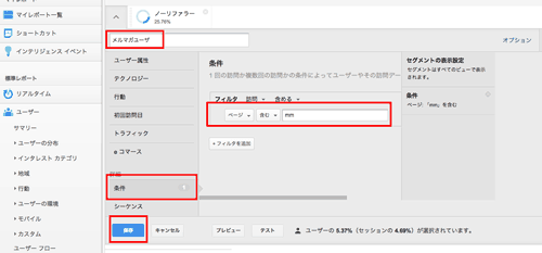 1で決めた施策の、過去の結果を集計します。セグメント機能を使い、期間を長くして、訪問数やコンバージョン率などを調べていきましょう。