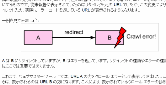 リダイレクト元URLのクロールエラーを報告するようにウェブマスターツールが改善