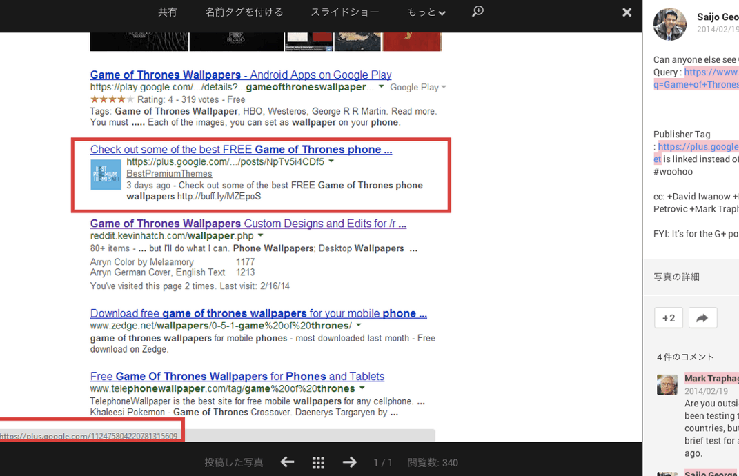 Google+ページの投稿がロゴ付きで検索結果に出てきた