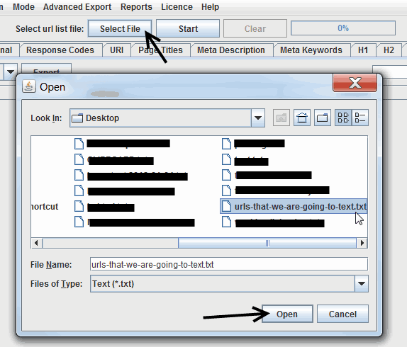 ステップ5:Screaming Frogを開き、リストモードに切り替えて、ファイルをアップロードする