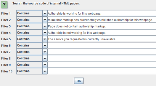 もちろん、自分のサイトをクロールして、その結果に対してScreaming Frogのカスタムフィルタを使い、サイトのコードに含まれる「rel="author"」や「?rel=author」といったフレーズが適切に使われているかどうかをチェックする方法もある。
