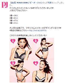 ソーシャルメディアの担当者自身がみんな、PEACH JOHN(ピーチ・ジョン)の商品やブランドが好きなので、「こういうのがいいよね!」という感じで、お客様と同じ目線で一緒に楽しんでいる。押しが強いメッセージよりも、フレンドリーで楽しめるもののほうが、PEACH JOHNのことを伝えられる。