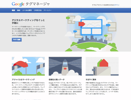 まず「Googleタグマネージャ公式サイト」にアクセスし、タグマネージャのアカウントを開設します。