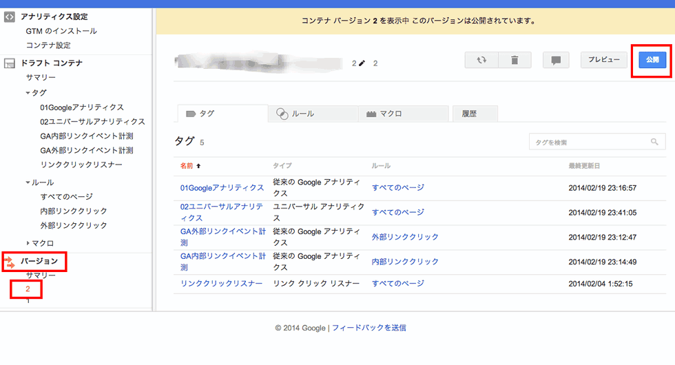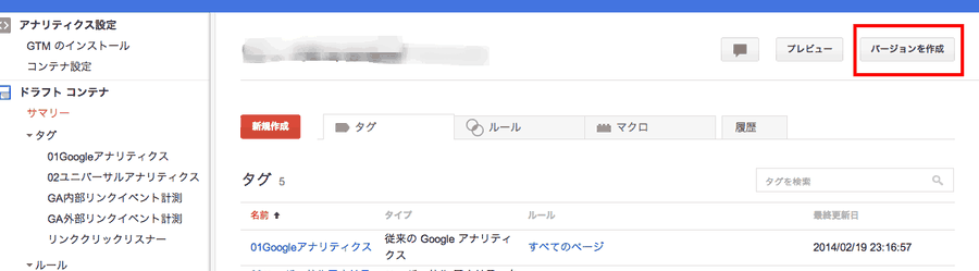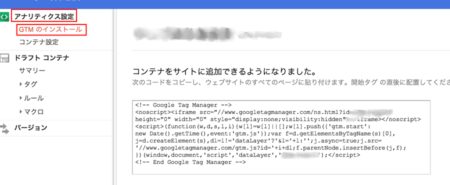 Googleタグマネージャのタグを確認し、サイトに貼り付けます。最後にバージョンを保存し、公開しましょう。