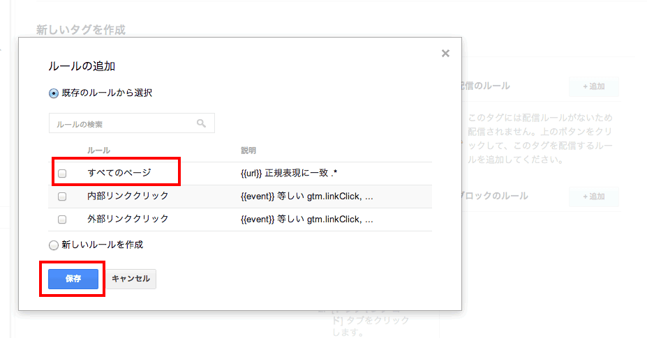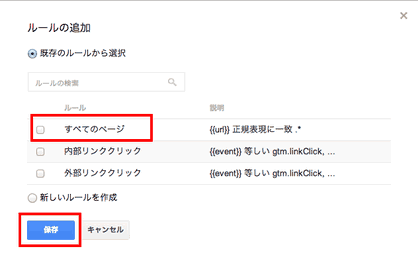 ③「すべてのページ」というルールがあるので、そちらと紐付けます。