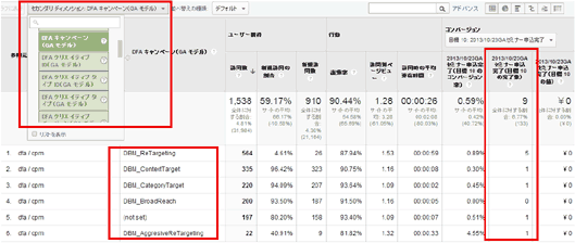 実際のレポート画面から、DCMで管理するキャンペーンごとの数値を見てみよう。