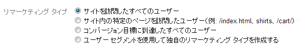- ユーザーセグメントを使用して独自のリマーケティングリストを作成する(オプション作成)