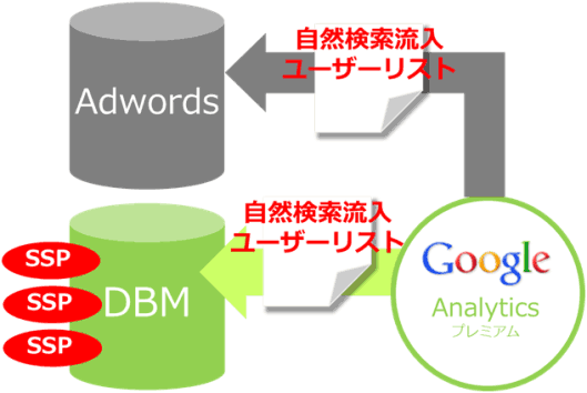 DBMに対してリマーケティングリストを共有し、GDN以外のSSPにも広告配信が可能になる。