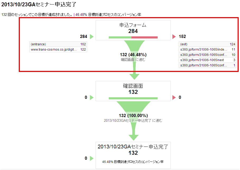 セミナー申し込みの受付を開始してしばらく経った時点での、GAの目標到達プロセスのレポートが図22だ。