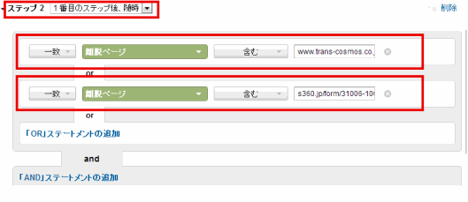 シーケンスフィルタ設定のステップ2では、離脱ページの指定を行う。接触タイミングを「随時」としたのは、ビュースルー訪問も今回のターゲットに入れるためである。「直後」を指定して限定すると、ユーザーの行動を指定できる反面、リストのボリュームが小さくなってしまう。