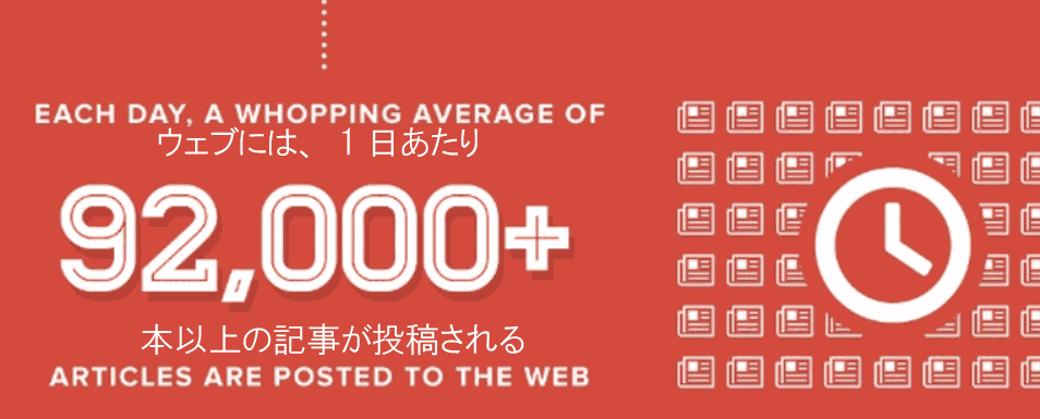 独自のコンテンツで定期的にサイトを更新するだけでは不十分だ。インターネットには毎日約9万2000本の新しい記事が投稿されている。デジタルメディアのパブリッシャーは、大量のコンテンツを低価格で制作できるシステムを開発した。たとえば、Huffington Postは1日に最低でも1200本のコンテンツを作る。Forbesは(1000人の寄稿者を擁して)400本だ。そして、コンテンツを作るのはパブリッシャーだけではない。WordPress利用者は毎月、約3580万本の投稿を生み出している。