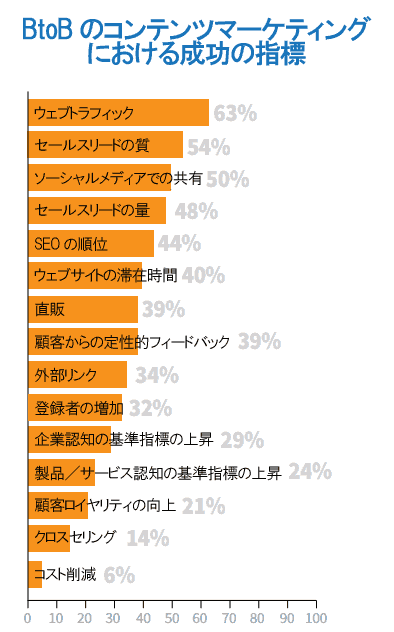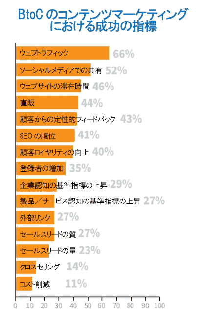 コンテント・マーケティング・インスティテュートが、BtoB企業とBtoC企業向けにコンテンツの効果測定に役立つ主要指標のすばらしいリストを作っているので紹介しておこう。