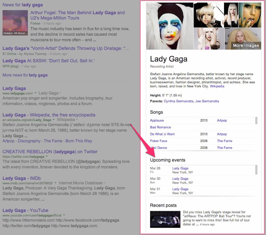 ナレッジグラフ、人気アーティストのコンサート情報を表示(JSON-LD情報も)