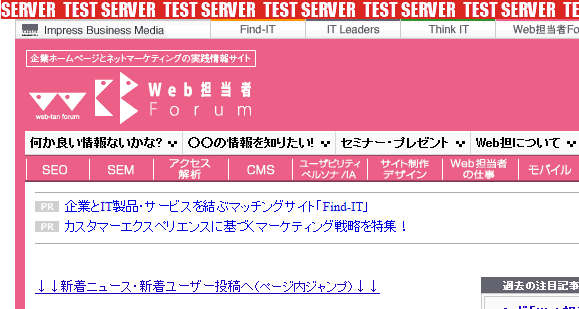 いかがでしょうか。もちろん、テストサーバーと本番サーバーで使うブラウザを分けるとか、テストサーバー用にHTMLを自動挿入するApacheモジュールを自作するとかする方法はありますが、こんな風にすれば、手軽にテストサーバーと本番サーバーを区別できるようになります。