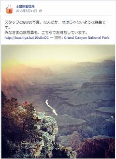 スタッフが連休中に撮影した写真を紹介。あわせて、写真投稿キャンペーン「旅写真」の告知につなげています。