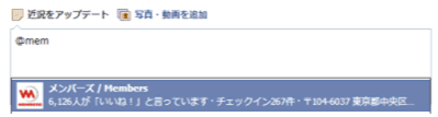 ページをタグ付けする方法は、個人ユーザーのタグ付け同様、投稿時に「@(アットマーク)+Facebookページ名」を入力します。