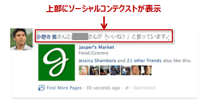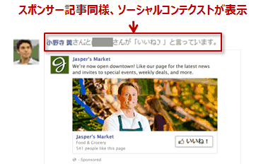 広告機能の統合※により、スポンサー記事に表示されていた友だちのアクション(ソーシャルコンテクスト)がPage Like Ad、Page Post Adにも表示されます。両広告を出稿すれば、スポンサー記事同様の成果につながると想定しています。