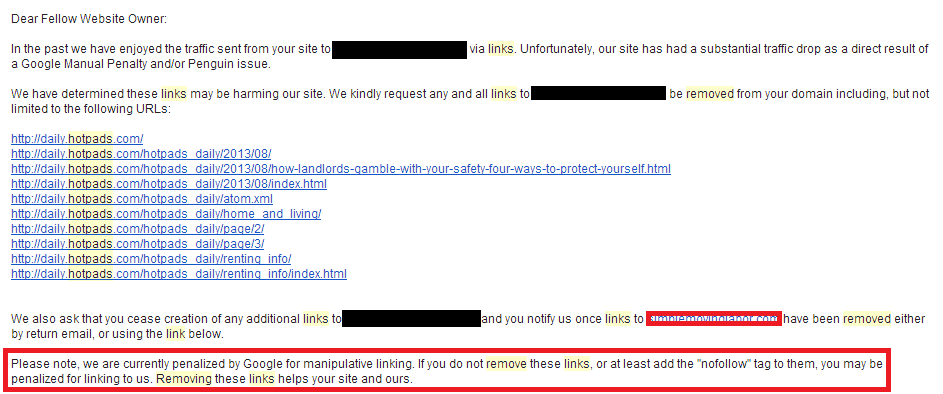 2012年のペンギンアップデート以降、質のよくないリンクを長年にわたり構築してきたSEO業者や、長年そうしたリンクの恩恵を受けていた企業が、リンク削除の依頼を出し始めた。