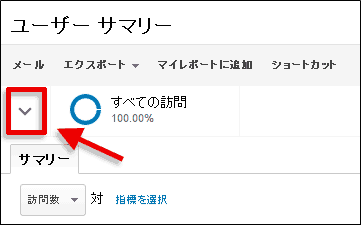 標準に用意されているセグメントには、「直近1か月で5セッション以上あったユーザー」「直近1か月で10ページビュー以上閲覧があったユーザー」という2つのセグメントは存在しないので、新しいセグメントを作成していく必要がある。ただ、標準に用意されているセグメントの中に、似たものがあるのでそこに触れておこう。まず多くのレポートの左上にある[v]のようなマーク(図1赤枠部分)をクリックする。