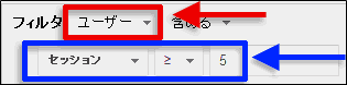 - 条件指定を「セッション≧5」(図4青枠部分)あるいは「セッション>4」
