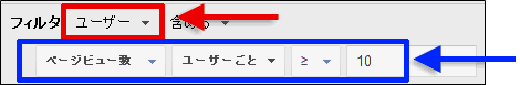 - 条件指定を「ページビュー数がユーザーごとで10以上」(図5青枠部分)