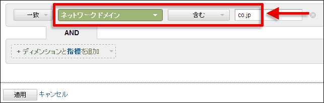 図6は、さらにどの企業ユーザーが訪問しているのかがすぐにわかるようにしてある出力例だ。企業ドメインからの訪問に絞り込むためのアドバンス フィルタ(図6緑枠部分、図7)を適用しており、ネットワーク ドメインが「**.co.jp」というパターン(図6黒枠部分、図7赤枠部分)に絞り込んでいる。