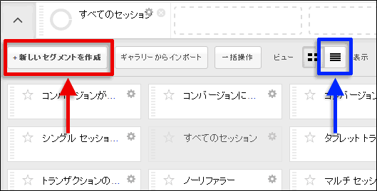 注:一覧表示(図2青枠部分)を選択している場合や、自分ですでにカスタムセグメントを作成している場合などでは、図2と同じ見え方にはならない。